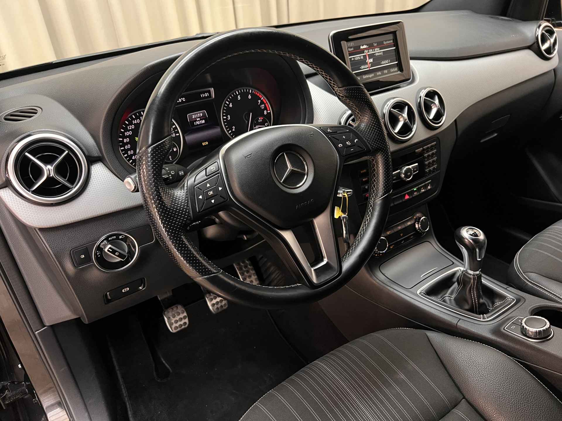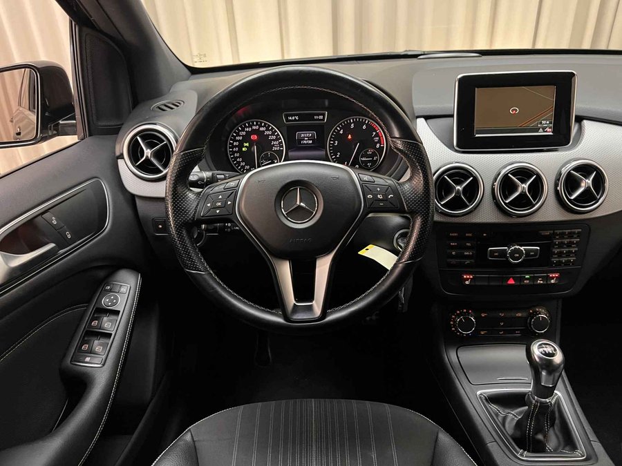 Mercedes-Benz B180 in de Prestige uitvoering, prachtige verschijning voorzien van alle noodzakelijke opties zoals camera, parkeersensoren voor + achter, navigatie, stoelverwarming, bluetooth en afneembare trekhaak voor o.a. de fietsendrager. Afkomstig uit 2014 met slechts 170.738 km op de teller.